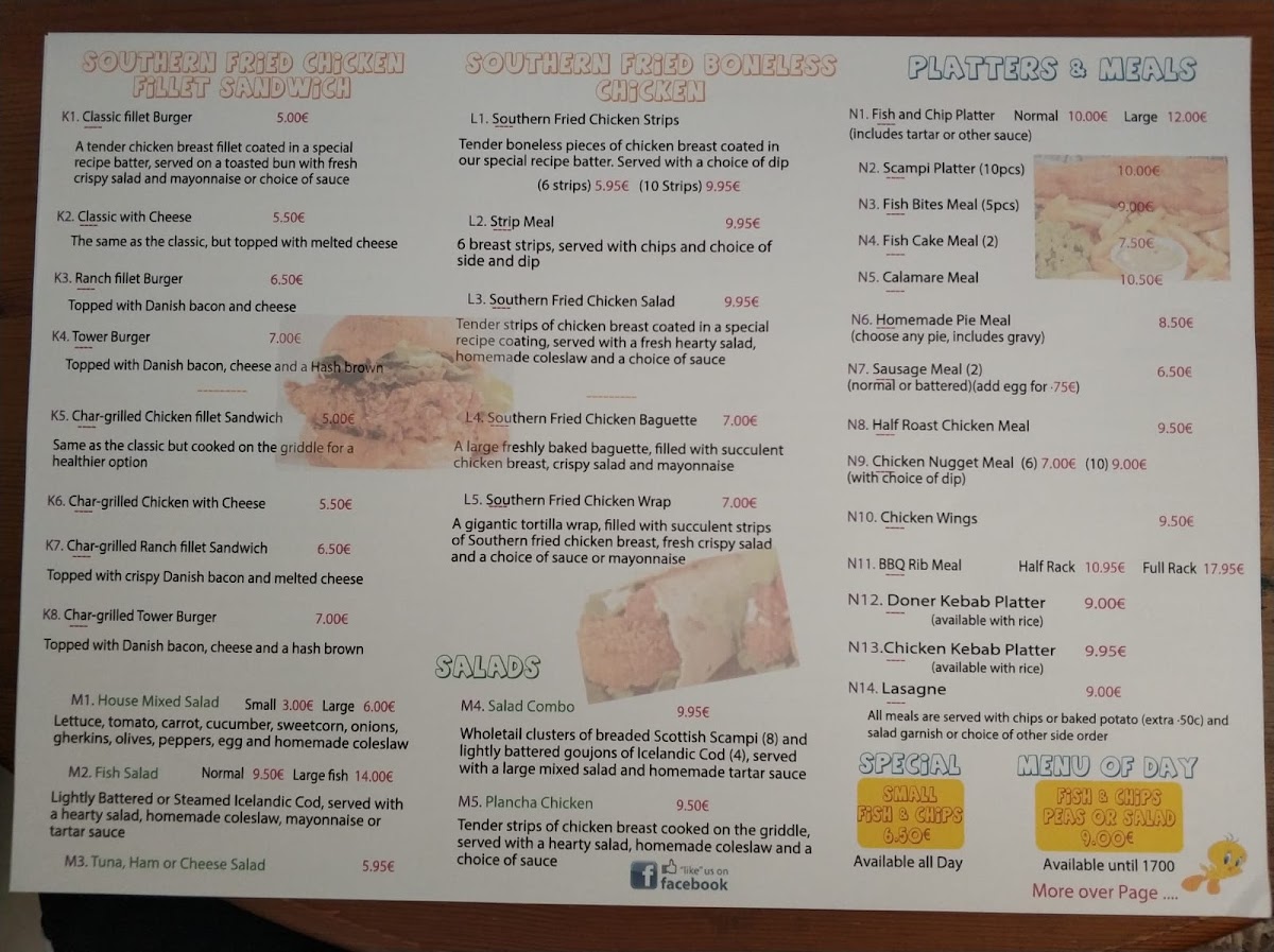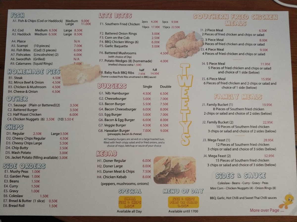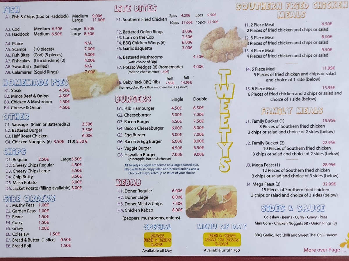 Tweetys Fish And Chips Menu